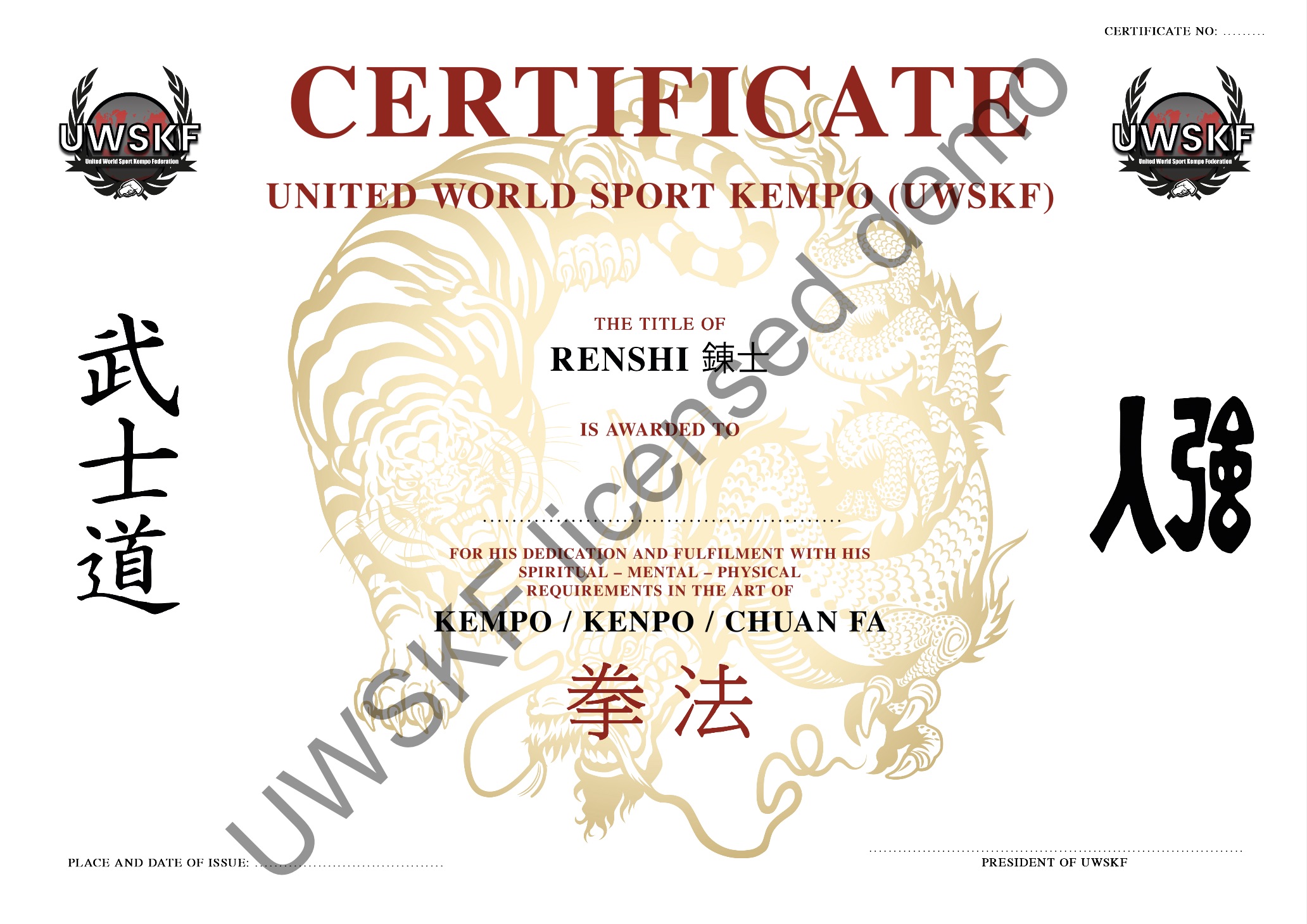 | I. | Hanshi | Grand Master of Sport Kempo | Long time service on International level for UWSKF (min. 10 years) |